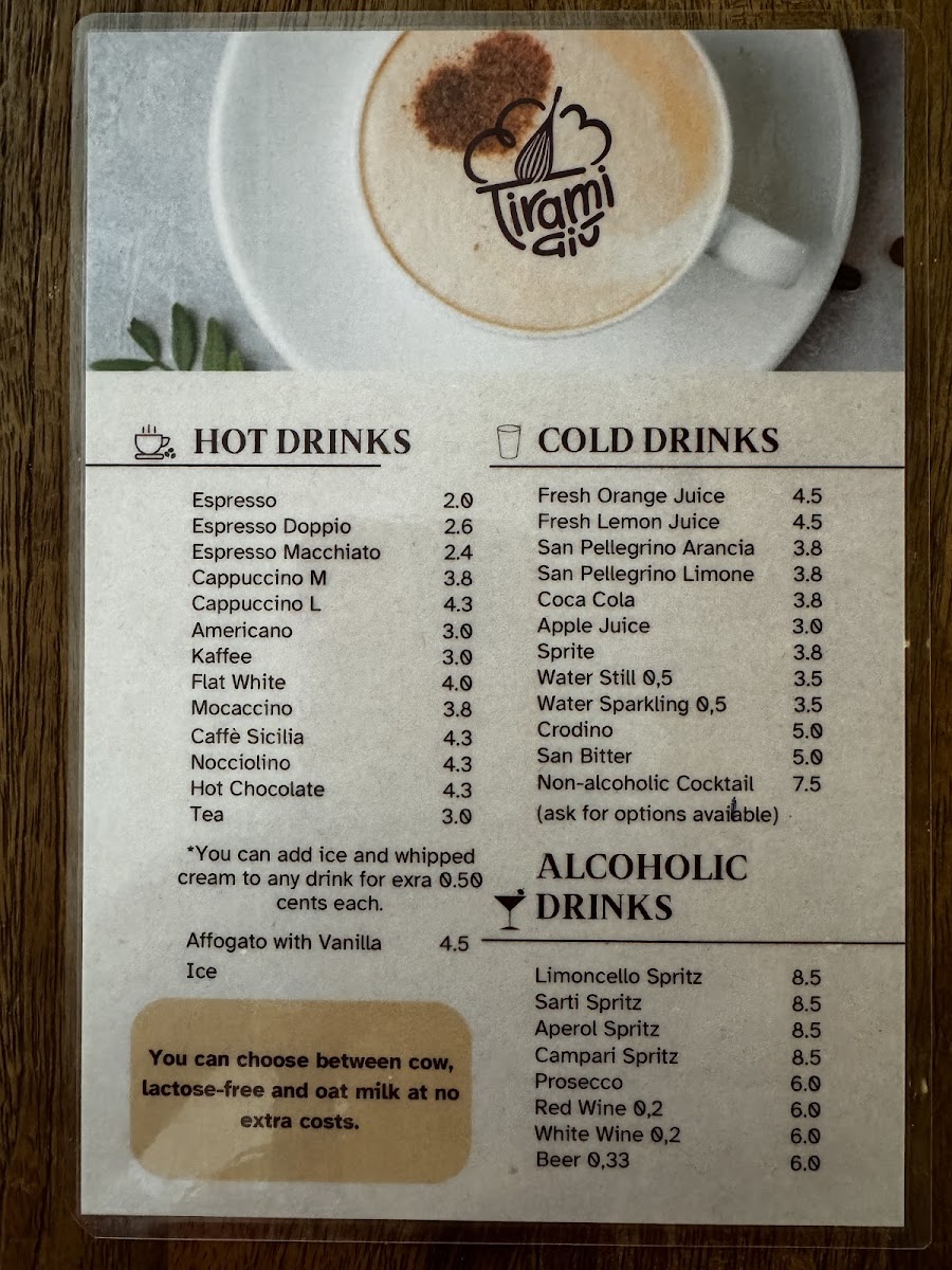 TiramiGiu Menu