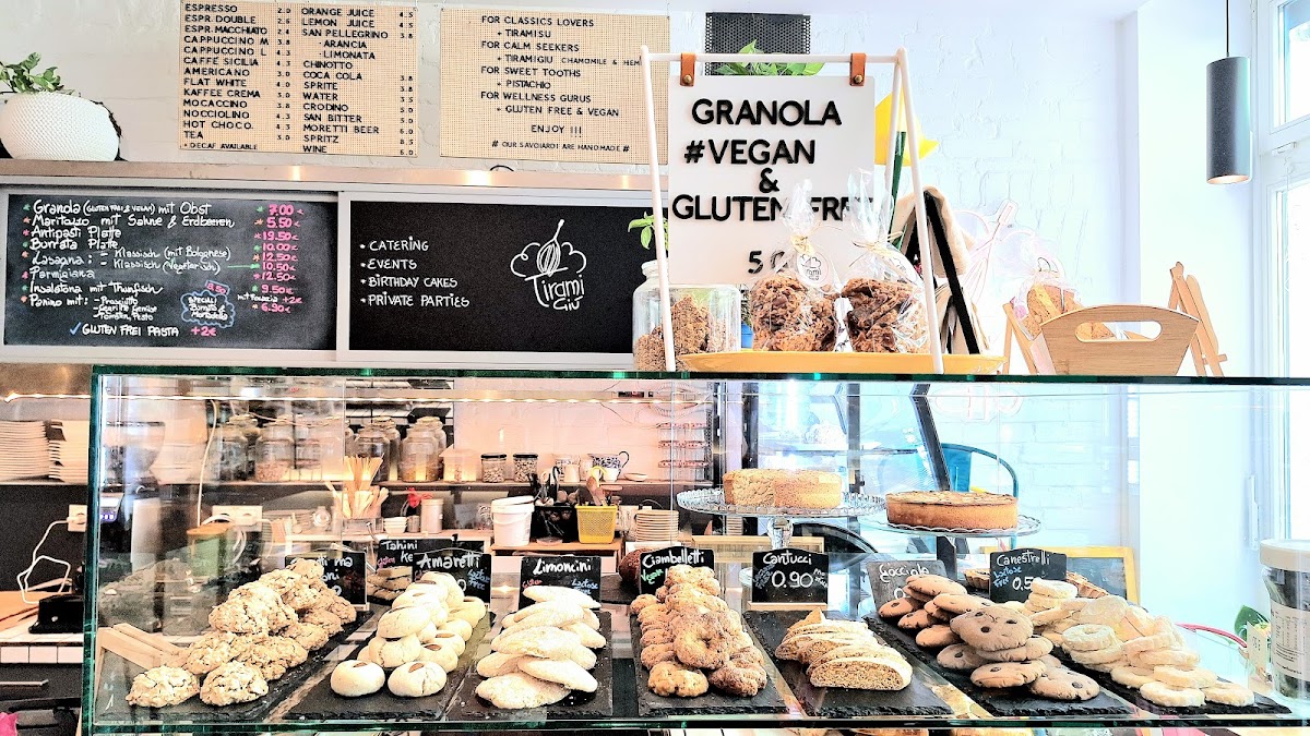 The menu at TiramiGiu offers a variety of options focused on traditional Italian coffee shop fare, suitable for breakfast, coffee breaks, and light meals. Visitors can find a selection of coffee drinks including cappuccino and other espresso-based beverages. The food offerings primarily feature pastries and desserts, such as croissants, tiramisù, maritozzo con la panna, and crostatine. There is also a daily savory option available for those seeking a light lunch or snack.
